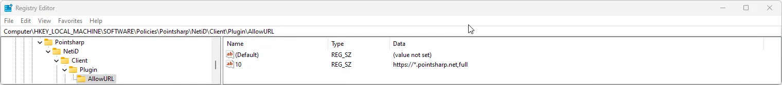[HKEY_LOCAL_MACHINE\SOFTWARE\Policies\Pointsharp\NetiD\Client\Plugin\AllowURL]